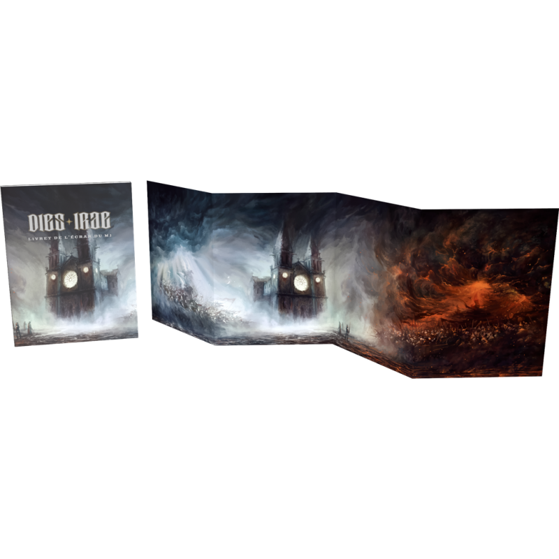 Conçu spécifiquement pour le MJ de Dies Irae, l'écran est un outil d'efficacité. Non seulement il plonge les joueurs dans l'atmosphère du jeu avec son visuel, mais il sert aussi de mémo rapide des points de règles et des informations cruciaux pour un déroulement de partie optimal.