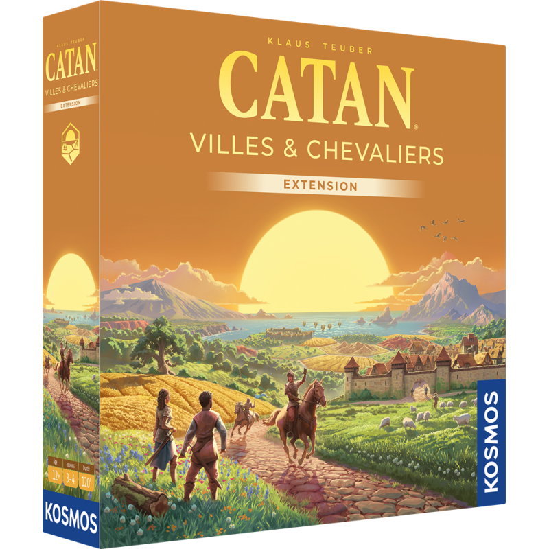 CATAN – Villes & Chevaliers ajoute une dimension stratégique et coopérative au jeu de base CATAN. Développez vos villes, construisez des bâtiments prestigieux et défendez-les contre des hordes de barbares.
