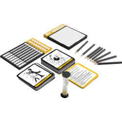 Pendant ce temps, les autres joueurs dessinent la scène décrite. Quand le sablier s’est écoulé, les joueurs s’échangent leurs œuvres et l’on contrôle. Plus leurs croquis comportent de critères mentionnés sur la carte d’illustration, plus le joueur remporte de points.