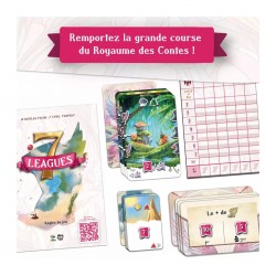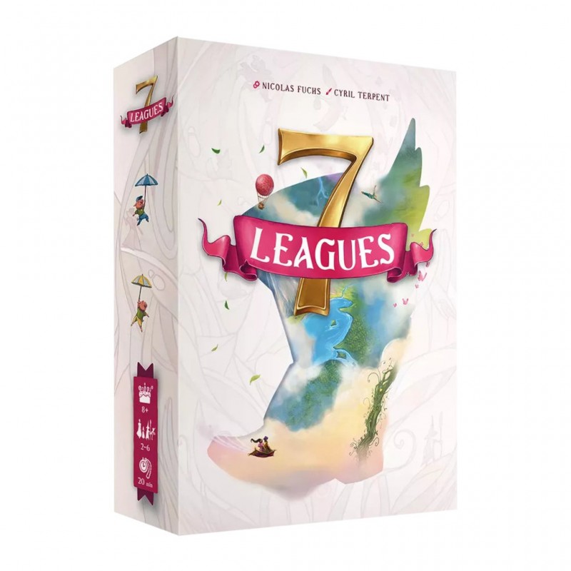 7 Leagues est un jeu de cartes féerique et stratégique pour 2 à 6 joueurs. À chaque tour, façonnez votre aventure en posant des cartes Terrain devant vous et en repiochant selon la météo. Créez des combinaisons puissantes, activez des effets en chaîne et assemblez vos bottes pour marquer un maximum de points.