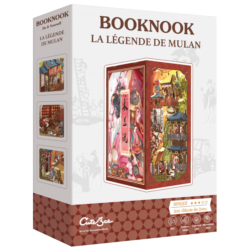 Un Booknook est une miniature décorative à assembler, souvent présentée sous forme de diorama, conçue pour être insérée entre les livres d'une étagère. Ces petites scènes donnent l'illusion d'une fenêtre ouverte sur un autre monde, transformant la bibliothèque en un lieu abritant un passage secret ou une ruelle enchantée.
